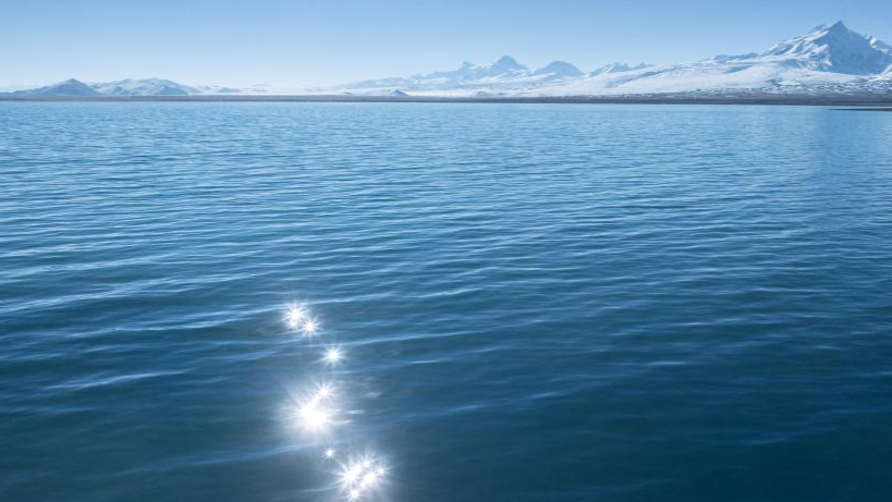 Tibetas: Peku ežero vaizdas iš paukščio skrydžio